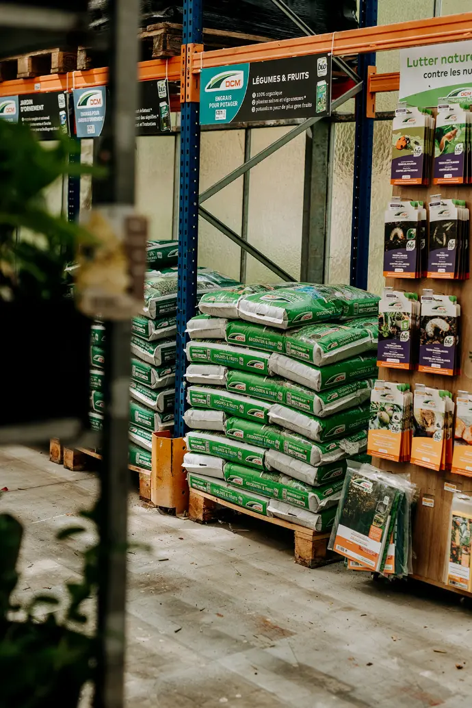 - Amendements de sol : Incluant des produits comme le fumier composté, la tourbe, et les engrais naturels pour améliorer la fertilité et la texture de votre sol.